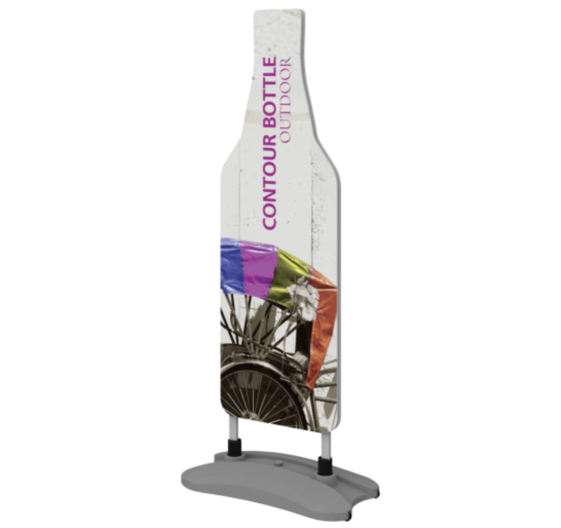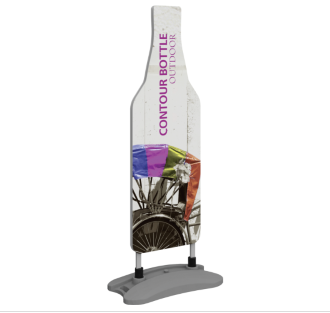 – Two Coroplast Bottle graphics with molded water base