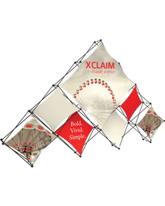 Xclaim 14ft wide 10 Quad Pyramid Kit 03 is a versatile stretch fabric popup display. Add dimension to your event or tradeshow with unique, exciting graphic styles. Xclaim 10 Quad Pyramid Kit 03 is easy to setup, lightweight and portable. The collapsible popup frame is fully magnetic (with magnetic linking connectors), making it simple to assemble and disassemble. Stretch fabric graphics come pre-attached to the frame, making assembly easy and fast. Graphics adhere to the hubs using push-fit attachment technology. Xclaim 10 Quad Pyramid Kit 03 comes with graphics, frame and soft case with a shoulder strap.