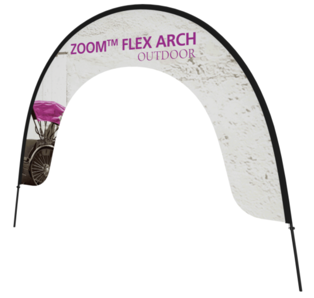 – Includes flexible fiber poles that feed into the black perimeter of the graphic