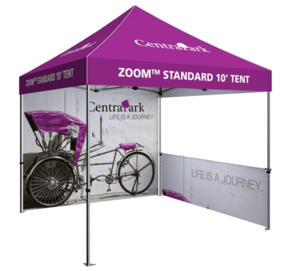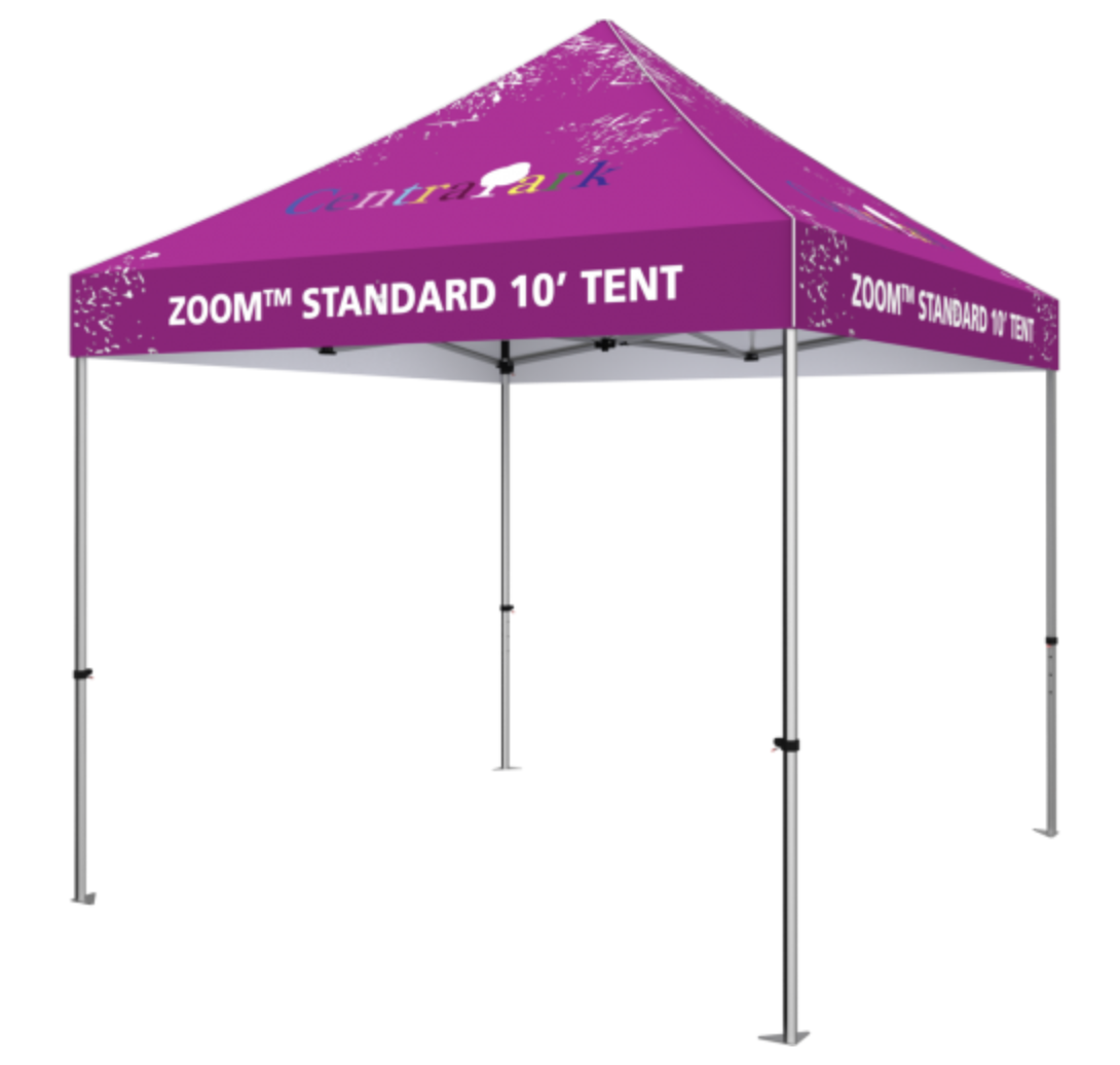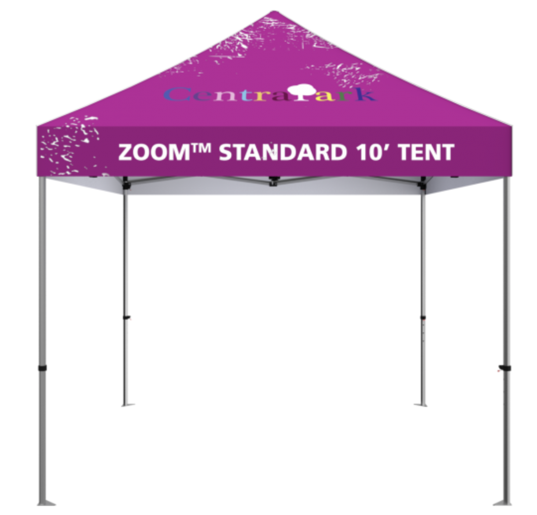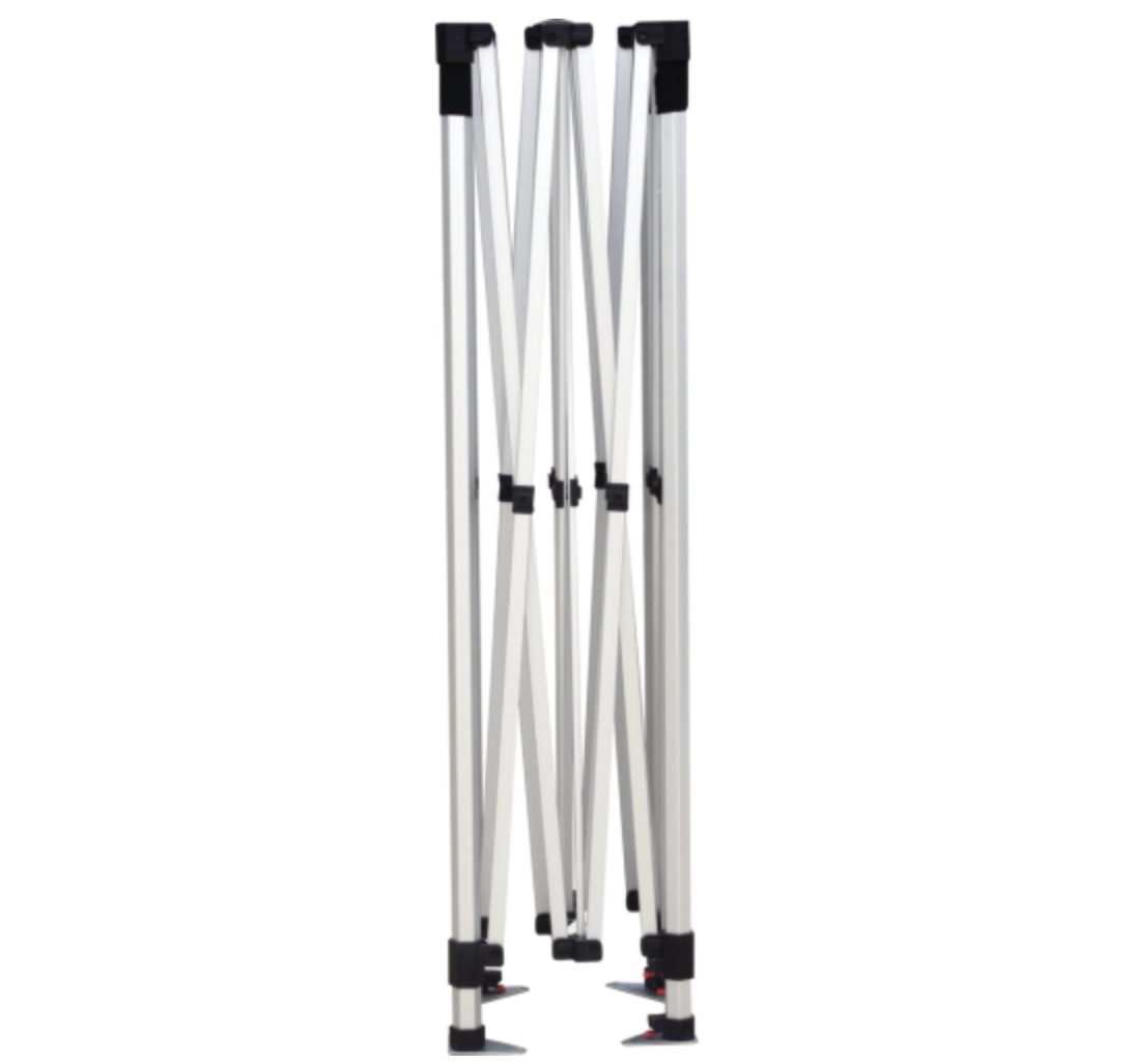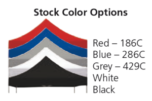 – Canopy Kit includes canopy (standard colors or custom printed), hardware frame, stakes, guy ropes & rolling carry bag